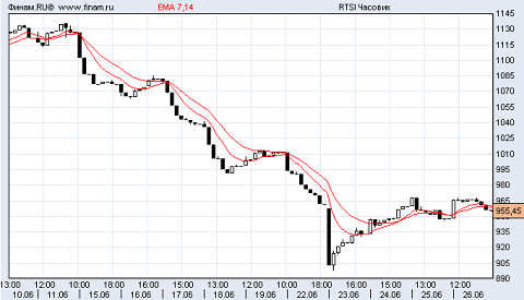 26 июня индекс ММВБ закрылся на уровне 960.16 пункта, индекс РТС - 955.45 пункта. На настроения инвесторов повлиял благоприятный внешний фон и рост основных фондовых индексов, а также колебания цены нефти.