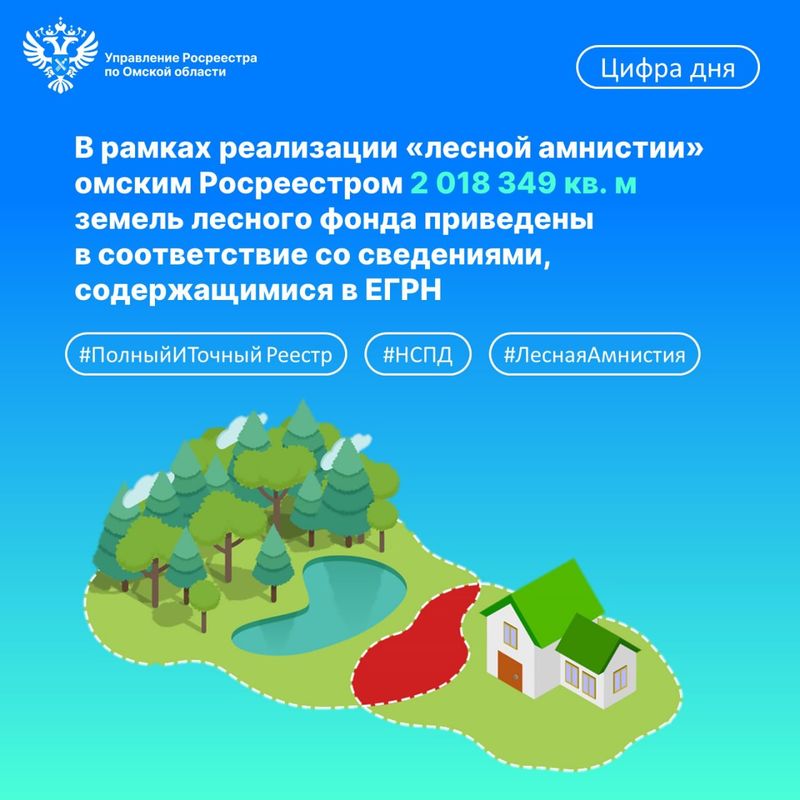 «Эти действия в Управлении Росреестра по Омской области осуществляются в рамках Федерального закона от 29.07.2017 № 280-ФЗ «О внесении изменений в отдельные законодательные акты Российской Федерации в целях устранения противоречий в сведениях государственных реестров и установления принадлежности земельного участка к определенной категории земель». Закон действует с августа 2017 года и именуется «лесной амнистией». За это время в орган регистрации поступило 599 заявлений об устранении пересечений земель лесного фонда с земельными участками иных категорий. В результате проведенной работы из земель лесного фонда была исключена площадь, равная 2 018 349 квадратным метрам, или 201,8 га», – уточнил руководитель Управления Росреестра по Омской области Сергей Чаплин.