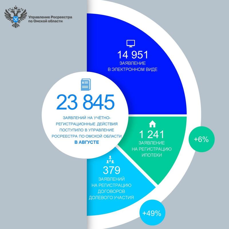 В августе в Управление Росреестра по Омской области на государственную регистрацию прав и постановку на кадастровый учет объектов недвижимости поступило 23 845 заявлений – это на 1 % больше, чем год назад (август 2024 года – 23 583), и на 5 % меньше, чем в июле текущего года (25 186).