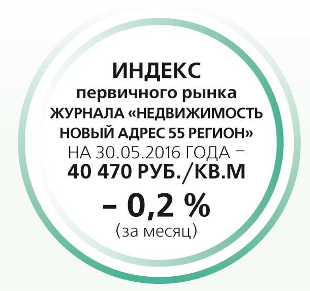 По данным журнала «Недвижимость Новый Адрес 55 регион», на конец мая 2016 года цена одного квадратного метра на рынке новостроек в среднем по городу опустилась за месяц на 100 руб./кв.м (–0,2%) и составляет 40 470 руб./кв.м (+/–250). Поскольку изменения цены за месяц ниже уровня погрешности — 250 руб./кв.м или 0,6%, т. е. по правилам статистики говорим, что средняя цена новостроек за месяц изменилась незначительно. С начала года увеличение цены составляет –480 руб./кв.м (-1,2%). Цена стала на 4,3% меньше цены годичной давности. Т. е. за год новостройки подешевели на 1 810 руб. за квадратный метр. Один квадратный метр нового жилья в среднем по Омску, измеренный в долларовом эквиваленте, с начала года подорожал на 3,9% до $605 и в европейской валюте до €543, поднявшись на 1,9%. Это объясняется колебаниями курса национальной валюты.