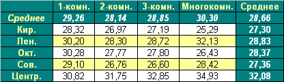 количества комнат на 26.12.2011 г. (тыс. руб./кв.м)