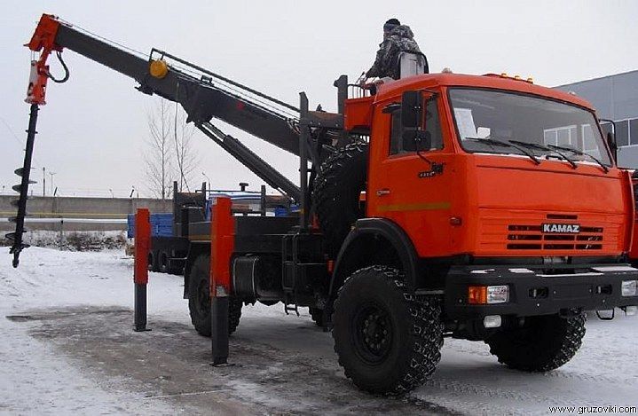 Кроме того, на стреле может устанавливаться гидробур, выполняющий операции бурения отверстий. Подача инструмента обеспечивается движениями стрелы. Получившаяся бурильно-крановая машина обладает еще одной интересной возможностью: на стреле крана-манипулятора может устанавливаться люлька для выполнения высотных работ, что очень удобно, когда механизм используется для проведения линий электропередач.