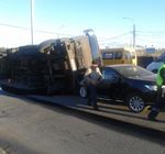 В Омске "КамАЗ" опрокинулся прямо на иномарку