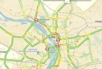 Немного быстрее движется поток от улицы Труда по Маркса в сторону "Голубого огонька". Здесь средняя скорость на отдельных участках может достигать 35 км/ч. Ленинградский мост «стоит» на съезде в сторону центра.
