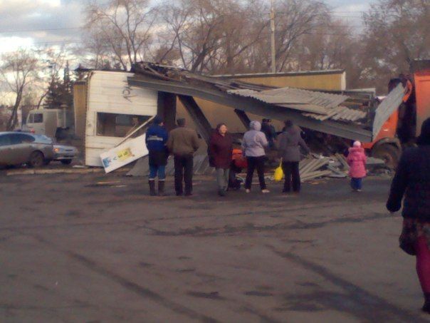 В Омске КАМАЗ снес продуктовый киоск