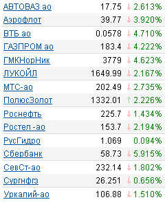 К закрытию торгов индекс РТС вырос на 3,19% (до 1249.14 пункта), а индекс ММВБ - на 3,25% (до 1202.92 пункта).