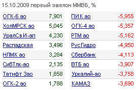 Лидерами понижения в RTS Standard стали обыкновенные акции Сбербанка (-4,91%), ВТБ (-4,41%) и "Газпрома" (-1,96%). На ММВБ хуже рынка выглядели обыкновенные акции "РусГидро"(-4,7%), Сбербанка (-3,9%), ВТБ (-3,76%), "Газпрома" (-1,92%).