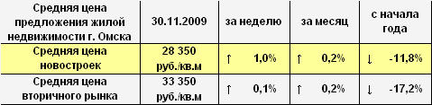 Средняя цена предложения жилой недвижимости Омска на 30.11.2009