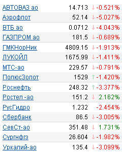 Прирост демонстрировали бумаги телекомов и "Северсталь": "Уралсвязьинформ" - +3,46%, "Ростелеком" - +2,16%, "Северсталь" - +1,73%.