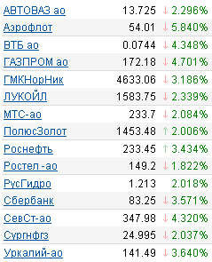 В середине сессии была опубликована отчетность одного из крупнейших банков Великобритании Barclays, прибыль которого за год выросла более чем в два раза, превысив прогнозы аналитиков на 1 миллиард долларов. На этом фоне в российском банковском секторе отмечался бурный рост. Акции ВТБ повысились в цене на 4,2%, бумаги Сбербанка выросли на 3,32%.
