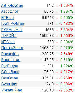 В лидерах падения оказались и акции металлургических компаний: ГМК "Норильский никель" потерял по итогам дня 3,69%, "Северсталь" - 3,26%, "Мечел" - 1,6%. Снижение нефтегазового сектора возглавили "ЛУКОЙЛ" (-1,45%) и "Роснефть" (-2,54%). Привилегированные акции "Татнефти" и "Сургутнефтегаза" закрылись в "плюсе" на 4,15% и 0,79%, соответственно.