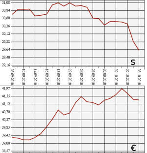Центробанк на 8 октября 2010 года понизил курс доллара США до 29,6334 рубля, а курс евро к рублю - до 41,3564 рубля. На торгах ЕТС ММВБ средневзвешенный курс доллара с расчетами "завтра" упал до 29,6801 рубля, курс евро - до 41,4861 рубля.По информации ЦБ РФ, на 8 октября официальный курс доллара США уменьшен почти на 26 копеек - с 29,8929 рубля до 29,6334 рубля. До такого низкого уровня "американец" не падал с мая этого года. Официальный курс евро составил 41,3564 рубля, что более чем на 4 копейки меньше предыдущей цены (41,4017 рубля 7 октября).