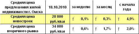 Средняя цена предложения жилой недвижимости Омска на 18.10.2010 г.