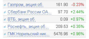 В лидерах роста оказались бумаги автопроизводителей: "КАМАЗ" прибавил 2,92%, "АВТОВАЗ" - 5,79%. Позитивную динамику демонстрировали бумаги, в которых по-прежнему актуальна идея приватизации: "Аэрофлот" прибавил 0,28%, "Транснефть" - 0,4%.