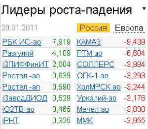 В четверг, 20 января, российские индексы открылись "гэпом" вниз, который был вызван опасениями относительно возросших рисков ужесточения монетарной политики в КНР. Утренний отчет о превысивших самые смелые ожидания аналитиков данных по ВВП Китая испортил настроения инвесторов во всем мире. Затем большую часть дня российские рынки консолидировались, и единственную попытку отыграть часть потерянного "быки" совершили после публикации хороших макростатистических показателей по рынку труда и жилья в США и позитивной отчетности Morgan Stanley.