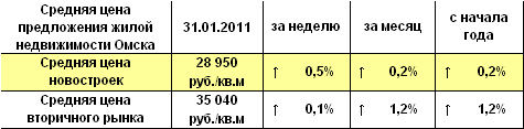 Средняя цена предложения жилой недвижимости Омска на 31.01.2011 г.