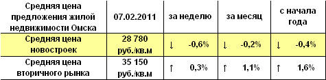 Средняя цена предложения жилой недвижимости Омска на 07.02.2011 г.