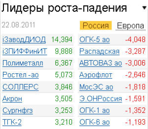 В целом "голубые фишки" торговались преимущественно на "зеленой" территории. Неплохой рост показали акции "Ростелекома" (+5,07%), ВТБ (+1,78%) и" Северстали" (+2,15%). Екатерина Кондрашова, начальник аналитического отдела "Московского Фондового Центра", отмечает, что акции "Ростелекома" подросли на фоне корпоративных новостей: оператор участвует в создании беспроводной доступа в Интернет в рамках предстоящей сочинской олимпиады в 2014 году.