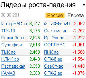 Вышедшие хорошие результаты "Газпрома" и" Сбербанка" превзошли ожидания. Чистая прибыль "Газпрома" по МСФО за 1 квартал 2011 года выросла до 467,9 млрд рублей, а чистая прибыль банка увеличилась до 176,1 млрд рублей. Тем не менее, по мнению аналитика ИК "АТОН" Елены Кожуховой, негативом для бумаг "Газпрома" является отрицательный денежный поток, возникший в ходе значительный трат на инвестиции. Хуже рынка смотрелись акции "НорНикеля", СеверСтали" и "РусГидро".