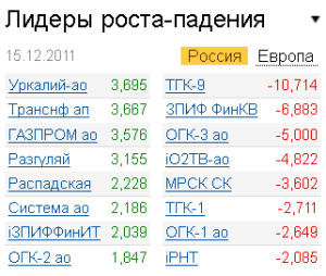 Еще одной звездой дня стали бумаги "Газпрома", которые прибавили за день в капитализации 3,58%. Михаил Федоров, аналитик ИК "РИК-Финанс", отмечает надежность эмитента. Кроме того, "Газпром" завершает эпопею по диверсификации газового потока и, вероятно, в будущем больше прибыли будет приходиться на долю миноритариев - дивидендная доходность бумаг вырастет", - считает г-н Федоров. Кроме того, лидерами дня стали бумаги АФК "Система" (+2,19%), "Разгуляя" (+3,15%) и "Распадской" (+2,22%).