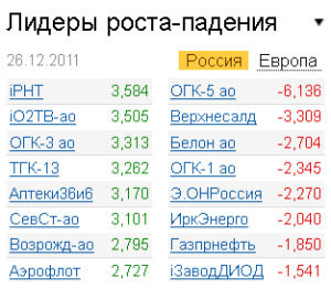 Хуже рынка в течение дня смотрелись акции машиностроителей - "АВТОВАЗ" просел на 1,4%, "КАМАЗ" - на 0,88%. Однако Наталья Лесина, аналитик компании "АЛОР", смотрит на акции данного сектора с оптимизмом, а динамику бумаг объясняет перепроданностью "голубых фишек" из-за чего спрос снижается в менее ликвидных бумагах. Для роста у бумаг "АВТОВАЗа" есть и фундаментальные причины. Компания объявила, что по итогам 2011 года планирует реализовать около 740 тысяч автомобилей, что, вероятно, позитивно скажется на финансовых показателях компании.