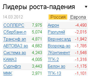 Основным корпоративным событием на российском фондовом рынке стало заявление руководства "ЛУКОЙЛа" (+0,33%) о планах увеличить дивидендные выплаты в три раза в долгосрочной перспективе. Акции компании в начале сессии обновили максимум года, но закрепить успех не смогли. Кроме того, инвесторы обратили внимание на публикацию финансового отчета группы "Черкизово". Чистая прибыль компании по US GAAP в 2011 году выросла на 2% - до $147,8 млн. И хоть финансовые показатели были на уровне ожиданий рынка, бумаги пищевой компании выросли на 2,02%. По прогнозам аналитика ИК "РУСС-ИНВЕСТ" Марии Шишкиной, деятельность группы в 2012 году во многом будет зависеть от ситуации в аграрном секторе: "Дело в том, что прошедший 2011 год - был годом рекордов, поставленным российским аграрным сектором, в том числе рекордное производство мяса и свинины. Вряд ли они повторятся в этом году".