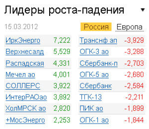 В числе корпоративных новостей на российском фондовом рынке можно выделить присвоение "ИНТЕР РАО ЕЭС" кредитного рейтинга по глобальной шкале BB+ (прогноз "стабильный") агентством Fitch. На этих новостях акции электроэнергетической компании выросли на 4,1%. Однако подобное сообщение выступает не единственным драйвером для бумаг эмитента. 15 марта состоялся совет директоров компании, от которого аналитики ждали оглашения параметров сделки по планируемой консолидации активов ОГК-1 и ОГК-3. "В результате акции "ИНТЕР РАО" протестировали сопротивление на уровне 3,5 копейки. Закрепление выше данной отметки поставило бы следующей ближайшей целью уровень 3,55 копейки. Поддержкой по бумагам выступает уровень 3,2 копейки", - отмечает аналитик ГК "АЛОР" Светлана Корзенева.