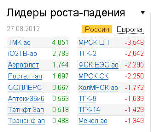Из существенных корпоративных событий на российском рынке в понедельник можно отметить публикацию "РУСАЛом" негативной отчетности за первое полугодие по МСФО. Так, чистая прибыль компании снизилась в 21 раз и составила $37 миллионов, выручка компании сократилась на 9,7%. Тем не менее, бумаги "РУСАЛа" отреагировали на представленные данные достаточно сдержанно. На этой неделе свои результаты за 2 квартал 2012 году по МСФО представят также "Сбербанк", МТС, "Северсталь", ММК, "М.Видео", "Э.ОН Россия", "Аэрофлот", ОГК-2, "Фармстандарт" и др.