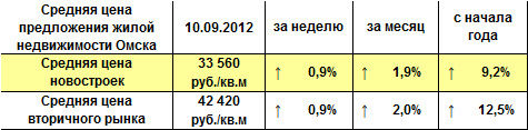 Средняя цена предложения жилой недвижимости Омска на 10.09.12 г.
