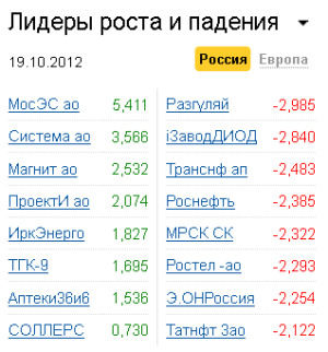 В результате индекс ММВБ завершил торги пятницы на отметке 1460,06 пункта, снизившись на 1%, РТС в свою очередь опустился на 1,16% - до уровня 1494,44 пункта. В числе лидеров падения значились бумаги "Разгуляя" (-2,9%), "Транснефти" (-2,4%), "Роснефти" (-2,3%), "МРСК Северного Кавказа" (-2,3%), "Ростелекома" (-2,2%), "Э.ОН.Россия" (-2,2%). Лучше рынка выглядели бумаги: "Мосэлектросети" (+5,4%), АФК "Система" (+3,5%), "Магнита" (+2,5%), ТГК-9 (+1,6%), "Иркутскэнерго" (+1,8%).