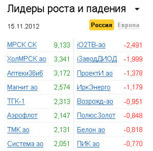 Начав торги в "красной зоне", индексы РФ уже к середине дня смогли подняться выше нуля и удержать это положение до завершения основной сессии. К закрытию ММВБ вырос на 1,03% - до 1386.25 пункта, РТС поднялся на 1,06% - до 1381.58 пункта. Лучше рынка выглядели "МРСК Северного Кавказа" (+9,1%), "Холдинг МРСК" (+3,34%), "Аптечная сеть 36,6" (+3,17%), "Магнит" (+3,57%), "Аэрофлот" (+2,15%), ТМК (+2,13%). Хуже торговались "О2ТВ" (-2.49%), "Иркутскэнерго" (-1,18%), банк "Возрождение" (-0,95%), "Полюс Золото" (+0,85%).