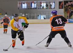Ожесточенный хоккейный матч развернулся между командами "Джаст Фит Лайф" и "Жилстрой". Со счетом 6:8 команду "Жилстрой" привел к победе нападающий – именинник Виктор Полукаров.