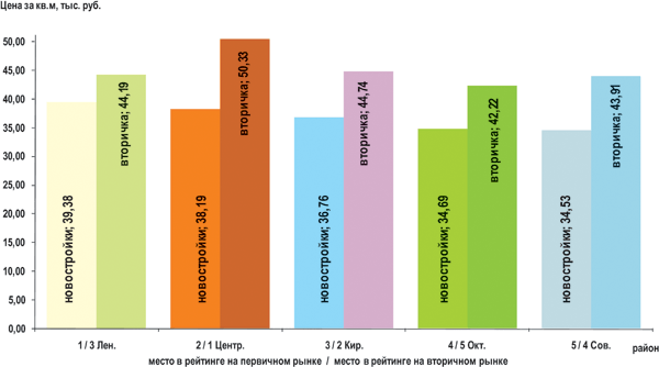 По данным журнала "Недвижимость" (ИД "Премьер") на 15 апреля 2013 года, за неделю цена одного квадратного метра жилья на первичном рынке поднялась на 200 рублей (+0,5 %) и достигла уровня в среднем по городу 37 тысяч 110 рублей.