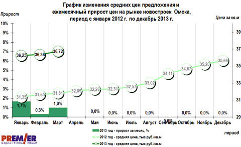 Подробный анализ цен за март 2013 года на омском рынке недвижимости можно найти в разделе "Статьи - Цены - Цены на недвижимость".