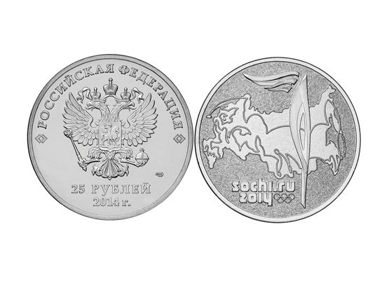 Памятную монету номиналом 25 рублей, посвященную эстафете Олимпийского огня, выпустят в обращение в конце месяца.