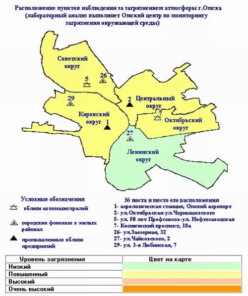 Карта загрязнения воздуха по округам с сайта ЦМС (www.gimet.omsknet.ru)