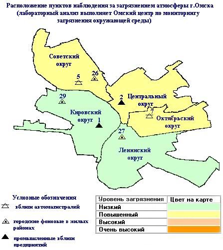 Характеристика загрязнения по округам города Омска в декабре 2007 г. (см. карту)