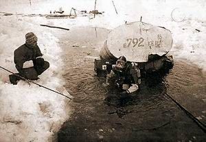 На фото (С) ГУ МЧС, 2004: извлечение провалившейся под лед машины