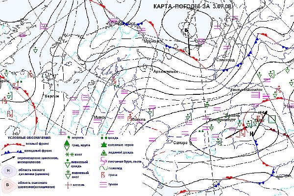 Синоптическая карта (С) www.gimet.omsknet.ru
