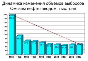 По данным государственных природоохранных органов, всего семь крупнейших предприятий Омска обеспечивают более 90% всех объемов выбросов вредных веществ, а три четверти - котельные и нефтезавод: Омский филиал ОАО "ТГК-11" (57,6%), ОАО "Газпромнефть-ОНПЗ" (27,3%), ООО "Омсктехуглерод" (2,8%), ЗАО "Экоойл" (1,8%), МП "Тепловая компания" (0,09%), ОАО "Омскшина" (0,09%) и ОАО "Омский каучук" (0,09%).