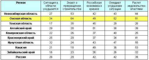 Результаты опроса ФОМ в Сибирском округе об отношении к кризису, %