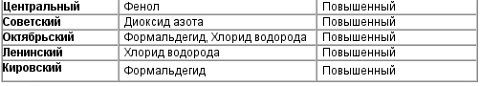 По информации ГУ "Омский центр по гидрометеорологии и мониторингу окружающей среды с региональными функциями", в августе 2009 года в целом по городу уровень загрязнения воздуха был высоким. Воздух города более всего загрязнен формальдегидом, этилбензолом, диоксидом азота, сажей и хлоридом водорода. Зарегистрированы единичные случаи превышения ПДК в Ленинском и Октябрьском округах по хлориду водорода, в последнем - еще и формальдегида. В Советском округе отмечено повышенное содержания диоксид азота, в Центральном - фенола, а в Кировском - формальдегида.