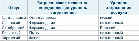 В сентябре воздух города более всего был загрязнен формальдегидом, фенолом, хлоридом водорода, оксидом углерода и пылью. Зарегистрированы единичные случаи превышения ПДК формальдегида - в Советском округе, хлорида водорода - Советском и и Кировском, фенола - в Советском, Октябрьском и Кировском округах. Пыль обнаружена сразу в трех округах: Советском, Октябрьском и Ленинском. Более того, в Октябрьском округе зарегистрировано 33 случая превышения ПДК формальдегида. В сравнении с прошлым месяцем в сентябре уровень загрязнения атмосферы в Октябрьском округе претерпел положительные изменения: с очень высокого он понизился до просто высокого. Формальдегид порядком "отравил" и Советский округ, где низкий уровень загрязнения сменился повышенным. Между тем, Кировский округ, похоже, теряет статус самого чистого в Омске. Так, в прошлом месяце там обнаружили ПДК оксида углерода, а в сентябре его сменил фенол. Уровень загрязнения Ленинского округа повышен за счет содержания в нем пыли. Центральный сохраняет низкий уровень загрязнения второй месяц подряд.