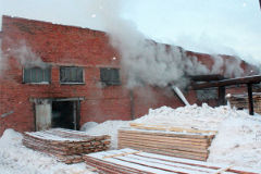 Сегодня утром на улице 22-го Партсъезда загорелось производственное здание, в котором обрабатывали древесину. В помещении находится три сушильные камеры. По предварительным данным, пожар произошел из-за того, что время сушки было увеличено.