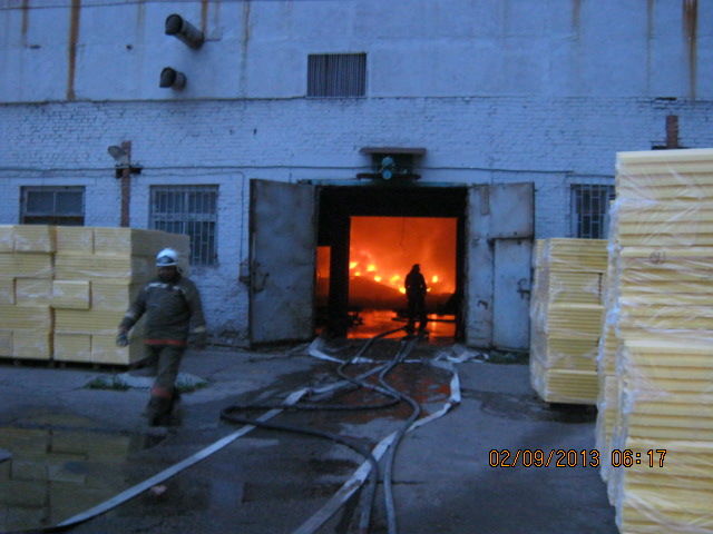 Когда приехали пожарные, уже частично обрушилось 500 "квадратов" кровли здания. Площадь пожара составила 1100 квадратных метров, повреждено 30 тонн полимерной ленты на вспененной основе.