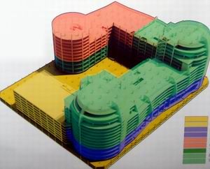 Презентацию проекта взял на себя представитель заказчика - ООО «ИваЦентр», поскольку автор пожелал пока остаться неизвестным. Визуально комплекс общей площадью 120 799 квадратных метров представляет собой разомкнутый четырехугольник с тремя доминирующими цилиндрическими объемами, два из которых запроектированы 14-этажными, один – 12-этажным. Под всем "пятном застройки" предполагается сделать двухуровневую парковку на 1422 машиноместа. Часть здания, расположенную вдоль улицы Октябрьская, займет еще одна многоярусная парковка, по плану - на 514 машиномест (на схеме парковки обозначены желтым цветом). По словам представителя заказчика Александра Ильина, фасад здания решен в современном урбанистическом стиле: предполагается значительное остекление больших площадей, при этом будет использоваться контрастная тонировка стекла.