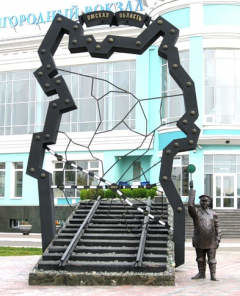 На фото (С) neraston.ya.ru: скульптура у пригородного вокзала в Омске