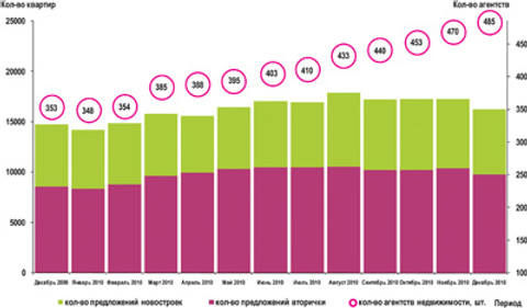 С начала 2010 года количество фирм стабильно увеличивалось каждый месяц. Всплеск активности участников наблюдался в феврале - за этот месяц на рынок вышли сразу 30 новых фирм. Еще один скачок произошел в июле, когда прибавилось 23 агентств. За последний месяц года общее количество выросло на еще 15 фирм.