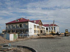 Отделочные работы одноэтажного здания завершены, сейчас в классах устанавливается мебель и учебное оборудование, а на территории ведется благоустройство. На школьном дворе размещена модульная котельная, мастерская, гараж и спортивная площадка. Школа откроется 1 сентября.