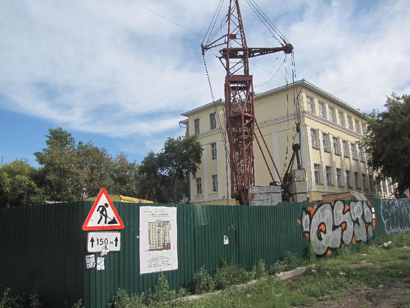 Строительство здания ведется по Красному Пути, совсем рядом с корпусом Омского государственного университета им. Достоевского. Судя по строительному паспорту объекта, к работам приступили в июне текущего года. Это будет административное здание с детским садом неполного дня, рассчитанным на 60 детей, то есть на две-три группы.